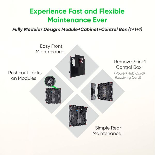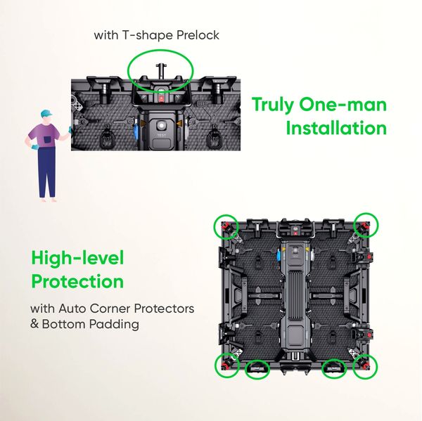 Trải nghiệm sự tiện lợi và tối ưu với màn hình cho thuê LAMPRO RN Series! Màn hình với độ dầy siêu mỏng 66mm và trọng lượng 7,3kg rất nhẹ nhàng, RN Series được thiết kế đơn giản và hiệu quả nhất. Khóa hình chữ T của nó cho phép thao tác lắp đặt chỉ với 1 người duy nhất. Lampro RN Series hỗ trợ linh hoạt cả bảo trì phía trước và phía sau với khóa đẩy ra và thiết kế mô-đun để thay thế hiệu quả trong vài giây. Khi mỗi giây đều có giá trị, đó là LAMPRO RN Series.