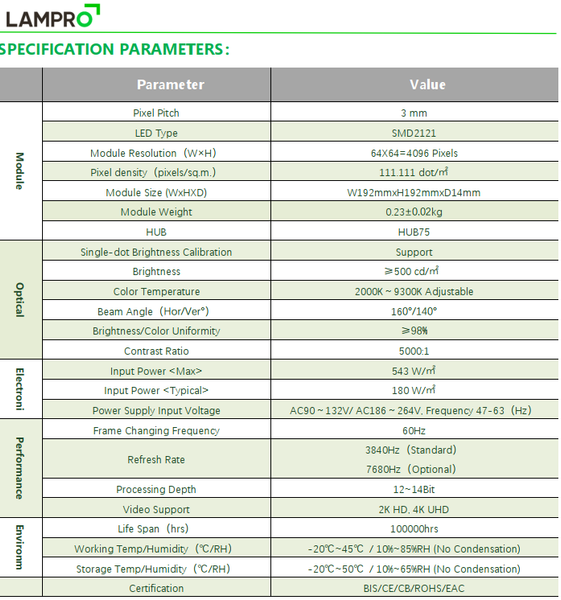 Download thông số kỹ thuật Module LED Lampro LC3P Tại đây
